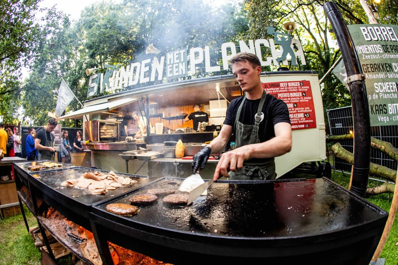 Wij zijn “Vrinden met een Plancha” en wij doen niets liever dan jouw BBQ of buitenfestival organiseren! Onze foodtruck uit 1974 laat de bezoekers kennismaken met onze eigen ontworpen hout-gestookte bakplaat van maar liefst 3 meter! De Vrinden maken de boel gezellig en zorgen voor een live cooking-experience met verse items van onze unieke plaat.