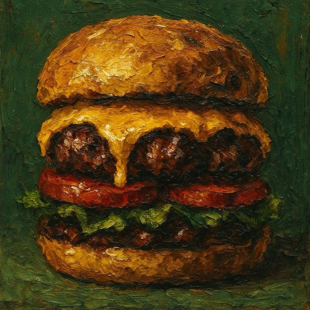 Smaakvolle vegetarische cheeseburger met rode-ui-compote, gesmolten cheddar en kimchi-ketchup voor een pittige twist. Samen met gepofte roseval aardappelen, krokante patatas bravas, rode uienringen en een romige gerookte tomatenmayonaise.
